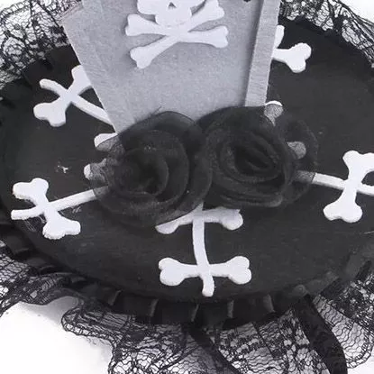 Transform your furry friend into the life of the Halloween party with this exquisite Skeleton & Cross Halloween Pet Hat. Designed with an eye for detail, this enchanting headgear combines the charm of Halloween with the sophistication of lace and floral elements. Watch as your pet becomes the center of attention, exuding both spookiness and elegance, making this festive season memorable!
