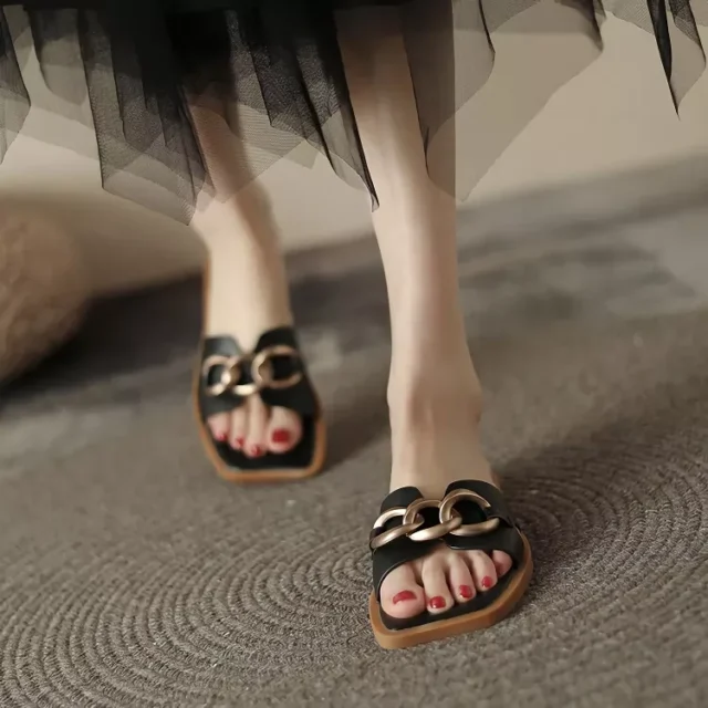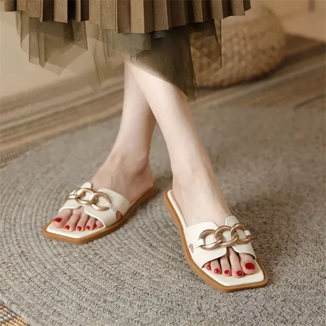 Step into the sun-soaked season with style and comfort in our latest collection of Summer Square Toe Leather Slippers for Women. Designed to blend modern aesthetics with timeless comfort, these sandals are a testament to handcrafted precision and refined taste. Whether you’re stepping out for a casual day in the city or heading to a chic outdoor soirée, these slippers will be your go-to footwear for every summer occasion.