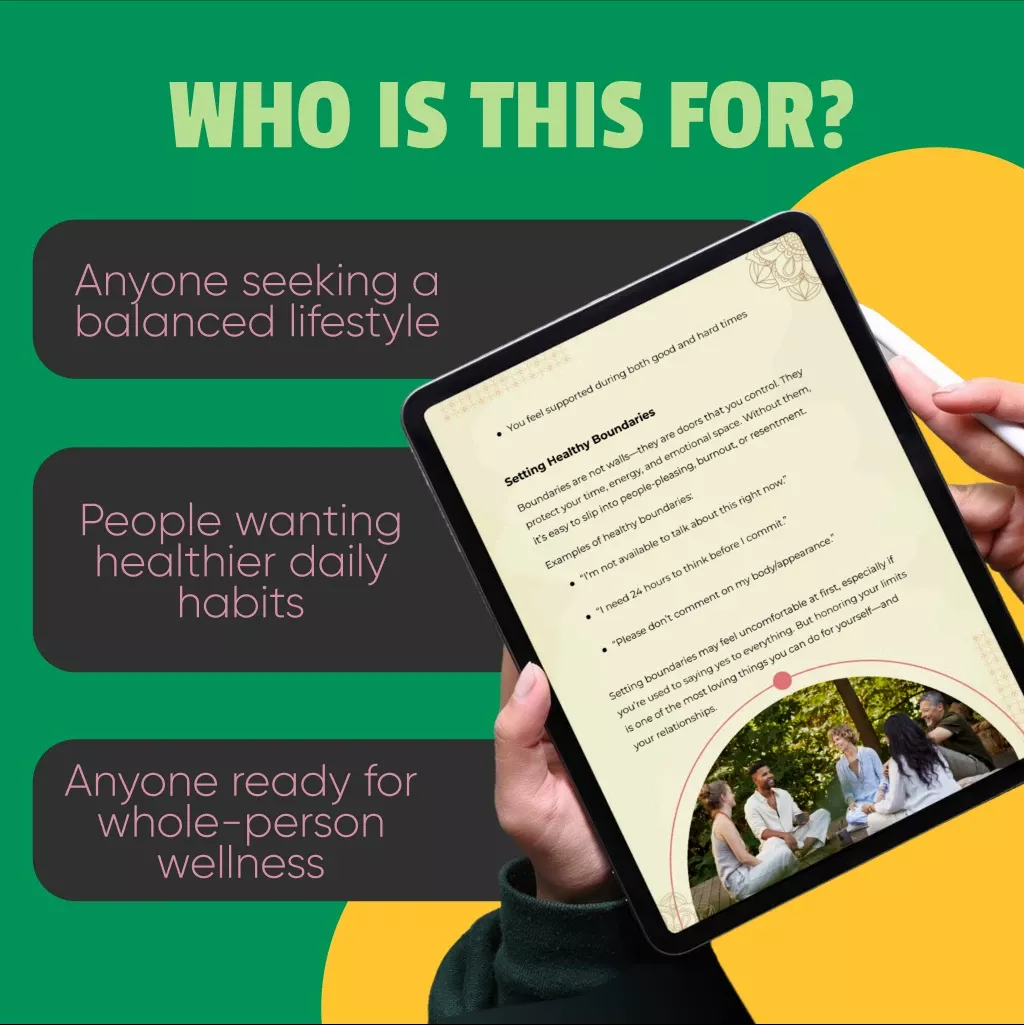 Unlike other guides that overwhelm you with rigid rules or unrealistic expectations, the Whole You: Holistic Wellness Guide meets you where you are. It’s practical, warm, and rooted in real-life strategies that work for real people—especially those starting from scratch. You’ll learn how to nourish your body, support your mental health, and foster meaningful connections without burning out or giving up.